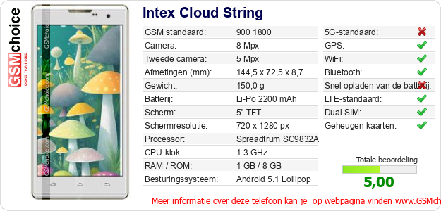 Gegevens van de telefoon Intex Cloud String op jouw webpagina
