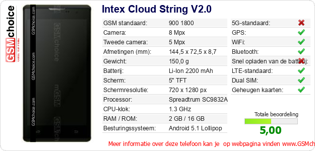 Gegevens van de telefoon Intex Cloud String V2.0 op jouw webpagina