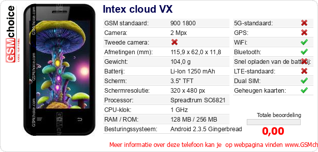 Gegevens van de telefoon Intex cloud VX op jouw webpagina