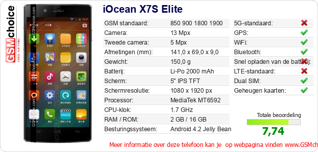 Gegevens van de telefoon iOcean X7S Elite op jouw webpagina