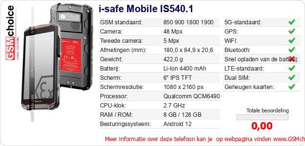 Gegevens van de telefoon i-safe Mobile IS540.1 op jouw webpagina