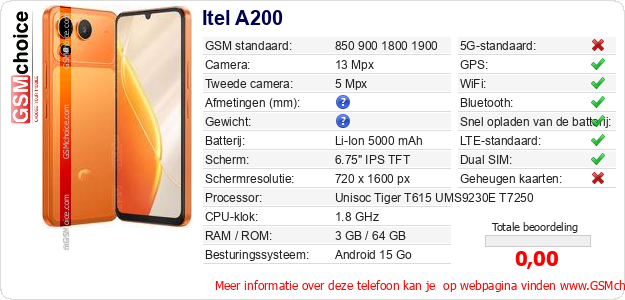 Verkoop je op ebay.com? Heb je jouw eigen webpagina? Als je de basisgegevens over Itel A200 ergens wilt publiceren, dan is het heel simpel. Het is voldoende om deze code te kopiëren en op jouw webpagina te plakken:Als je deze code plakt, dan wordt de onderstaande afbeelding getoond: