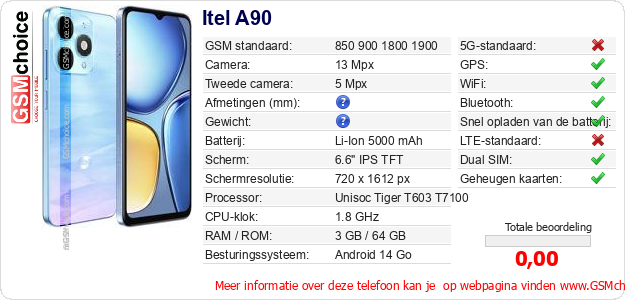 Gegevens van de telefoon Itel A90 op jouw webpagina