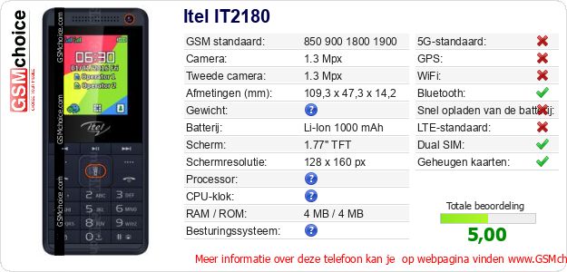 Gegevens van de telefoon Itel IT2180 op jouw webpagina