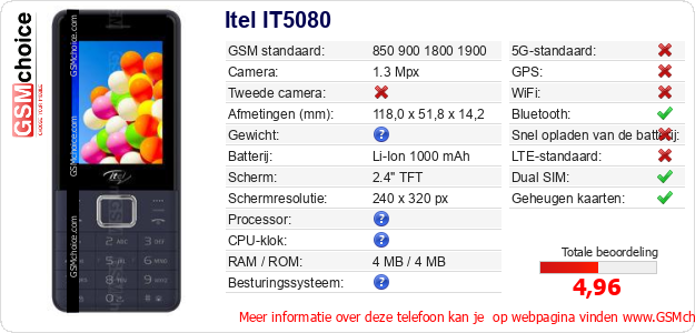 Gegevens van de telefoon Itel IT5080 op jouw webpagina