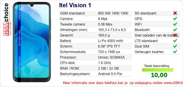 Gegevens van de telefoon Itel Vision 1 op jouw webpagina
