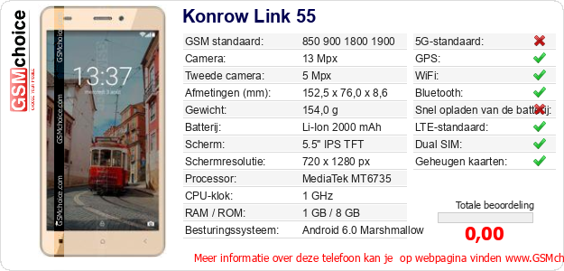 Gegevens van de telefoon Konrow Link 55 op jouw webpagina