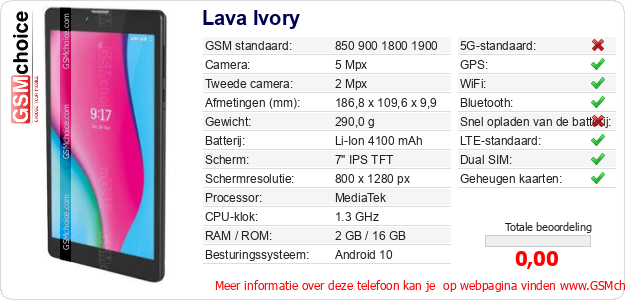 Gegevens van de telefoon Lava Ivory op jouw webpagina