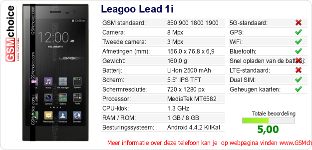 Gegevens van de telefoon Leagoo Lead 1i op jouw webpagina
