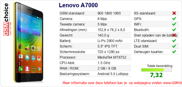 Gegevens van de telefoon Lenovo A7000 op jouw webpagina