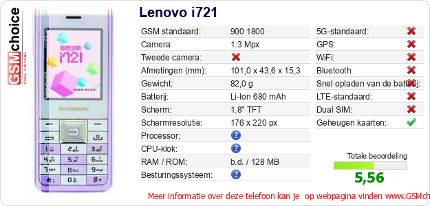Gegevens van de telefoon Lenovo i721 op jouw webpagina
