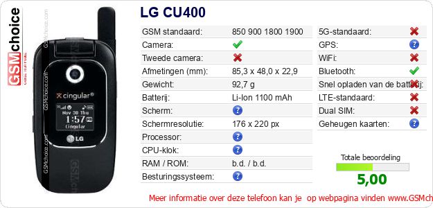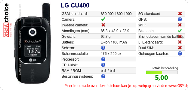 Gegevens van de telefoon LG CU400 op jouw webpagina