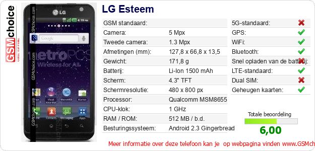 Gegevens van de telefoon LG Esteem op jouw webpagina