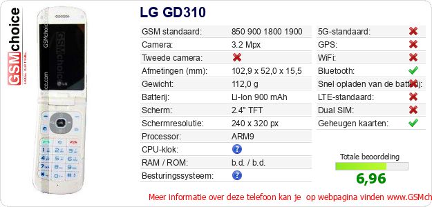 Gegevens van de telefoon LG GD310 op jouw webpagina