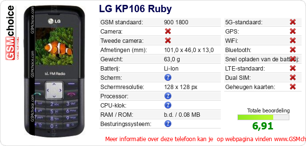 Gegevens van de telefoon LG KP106 Ruby op jouw webpagina