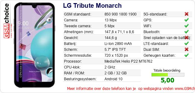 Gegevens van de telefoon LG Tribute Monarch op jouw webpagina