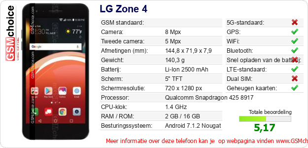 Gegevens van de telefoon LG Zone 4 op jouw webpagina