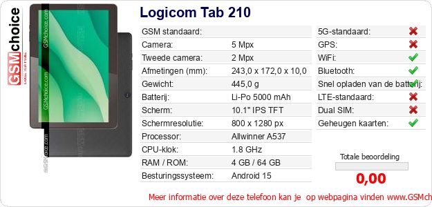 Gegevens van de telefoon Logicom Tab 210 op jouw webpagina