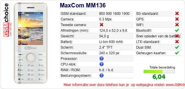 Gegevens van de telefoon MaxCom MM136 op jouw webpagina