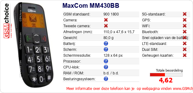 Gegevens van de telefoon MaxCom MM430BB op jouw webpagina