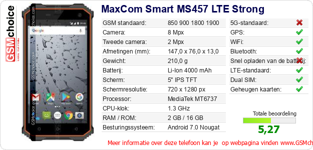 Gegevens van de telefoon MaxCom Smart MS457 LTE Strong op jouw webpagina