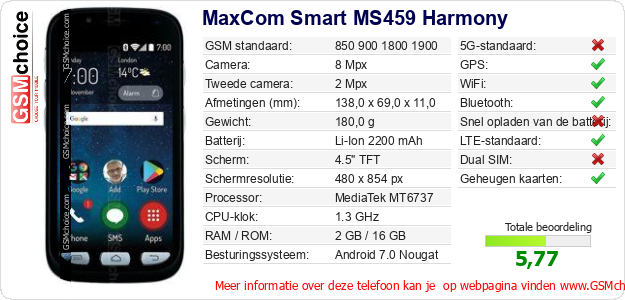 Gegevens van de telefoon MaxCom Smart MS459 Harmony op jouw webpagina