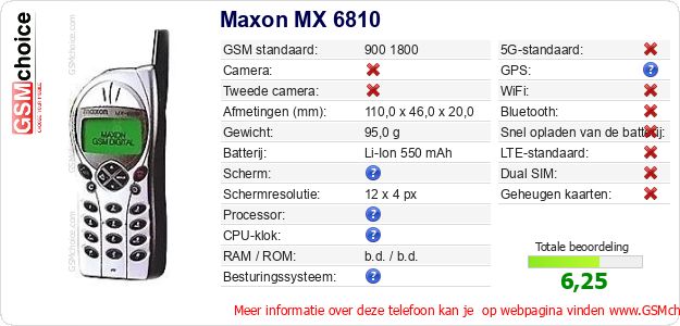 Gegevens van de telefoon Maxon MX 6810 op jouw webpagina