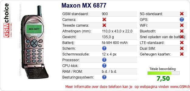 Gegevens van de telefoon Maxon MX 6877 op jouw webpagina