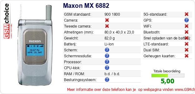 Gegevens van de telefoon Maxon MX 6882 op jouw webpagina