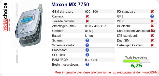 Gegevens van de telefoon Maxon MX 7750 op jouw webpagina