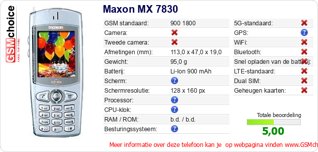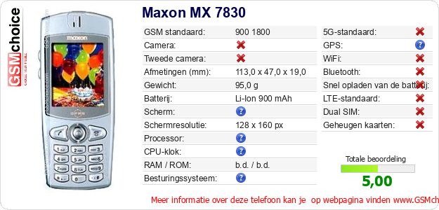 Gegevens van de telefoon Maxon MX 7830 op jouw webpagina