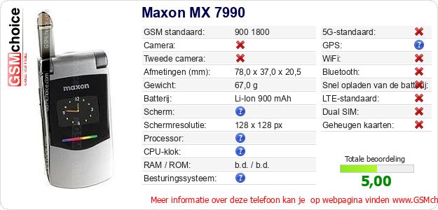 Gegevens van de telefoon Maxon MX 7990 op jouw webpagina
