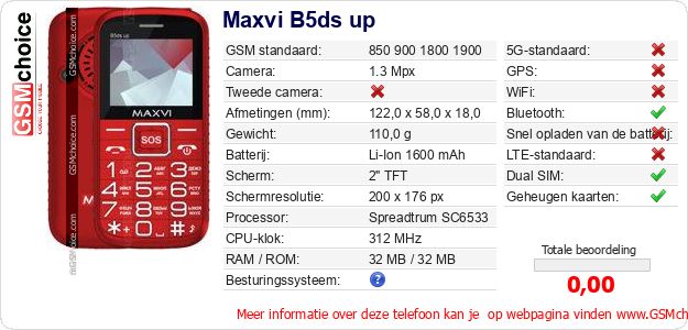 Gegevens van de telefoon Maxvi B5ds up op jouw webpagina