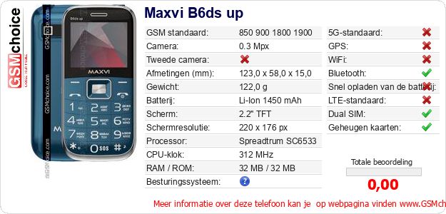 Gegevens van de telefoon Maxvi B6ds up op jouw webpagina