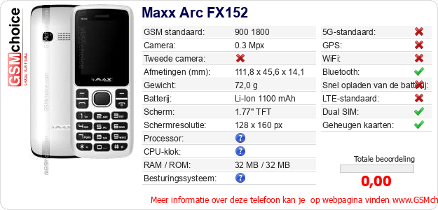 Gegevens van de telefoon Maxx Arc FX152 op jouw webpagina