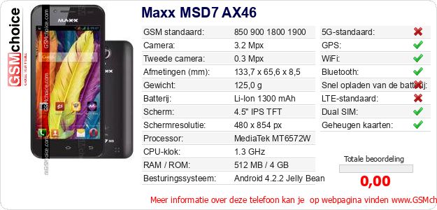 Gegevens van de telefoon Maxx MSD7 AX46 op jouw webpagina
