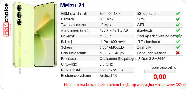 Gegevens van de telefoon Meizu 21 op jouw webpagina
