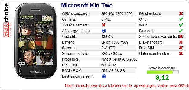 Gegevens van de telefoon Microsoft Kin Two op jouw webpagina