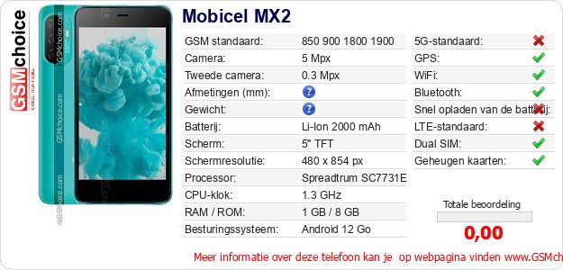 Gegevens van de telefoon Mobicel MX2 op jouw webpagina