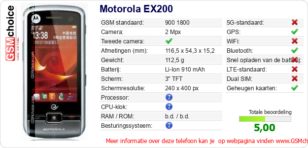 Gegevens van de telefoon Motorola EX200 op jouw webpagina
