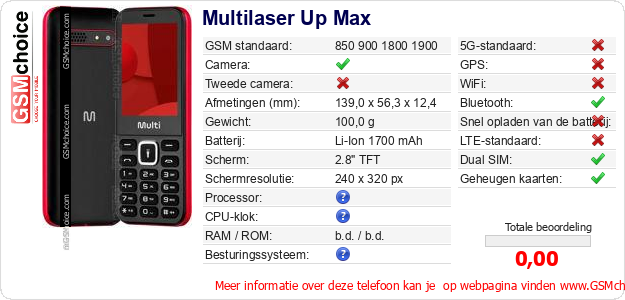 Gegevens van de telefoon Multilaser Up Max op jouw webpagina