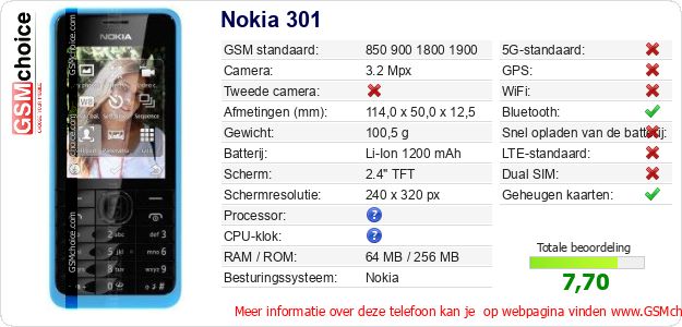 Gegevens van de telefoon Nokia 301 op jouw webpagina