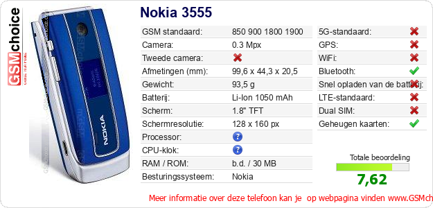 Gegevens van de telefoon Nokia 3555 op jouw webpagina