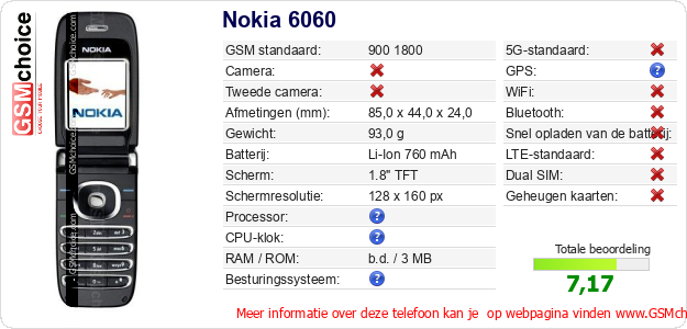 Verkoop je op ebay.com? Heb je jouw eigen webpagina? Als je de basisgegevens over Nokia 6060 ergens wilt publiceren, dan is het heel simpel. Het is voldoende om deze code te kopiëren en op jouw webpagina te plakken:Als je deze code plakt, dan wordt de onderstaande afbeelding getoond: