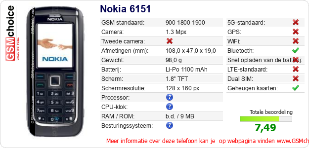 Gegevens van de telefoon Nokia 6151 op jouw webpagina