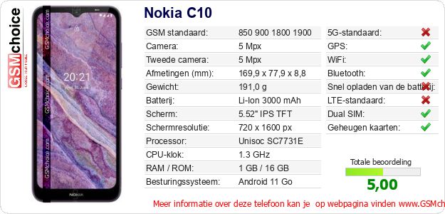 Gegevens van de telefoon Nokia C10 op jouw webpagina