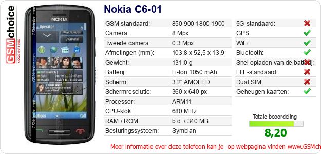 Verkoop je op ebay.com? Heb je jouw eigen webpagina? Als je de basisgegevens over Nokia C6-01 ergens wilt publiceren, dan is het heel simpel. Het is voldoende om deze code te kopiëren en op jouw webpagina te plakken:Als je deze code plakt, dan wordt de onderstaande afbeelding getoond: