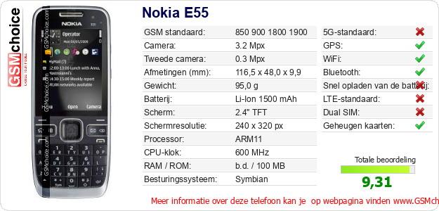 Gegevens van de telefoon Nokia E55 op jouw webpagina