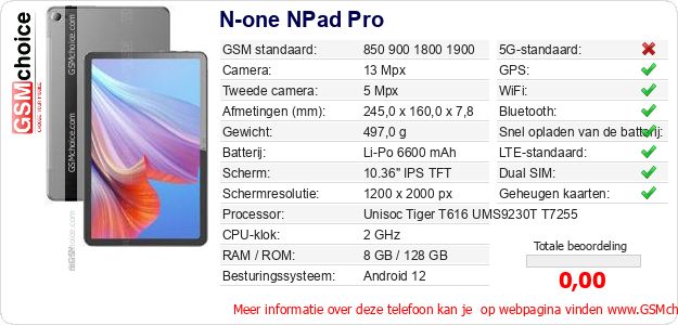 Gegevens van de telefoon N-one NPad Pro op jouw webpagina