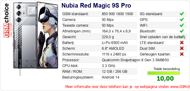 Gegevens van de telefoon Nubia Red Magic 9S Pro op jouw webpagina